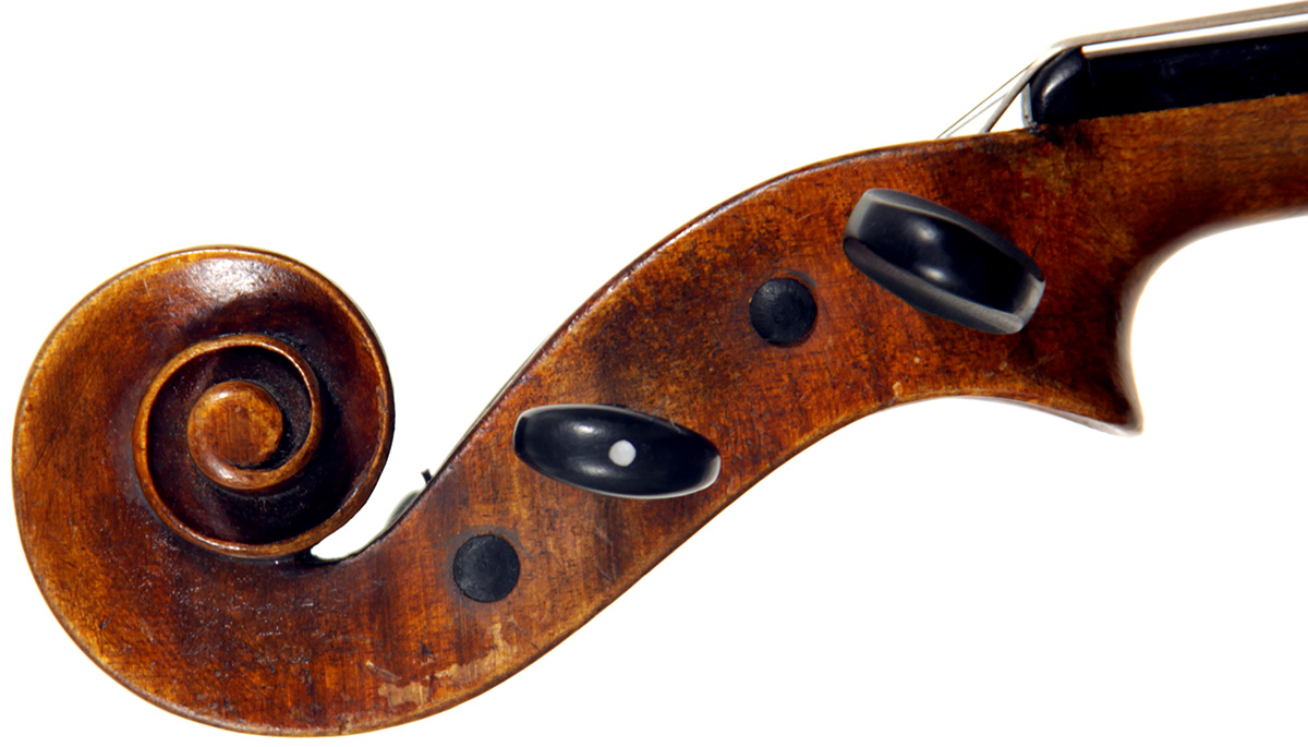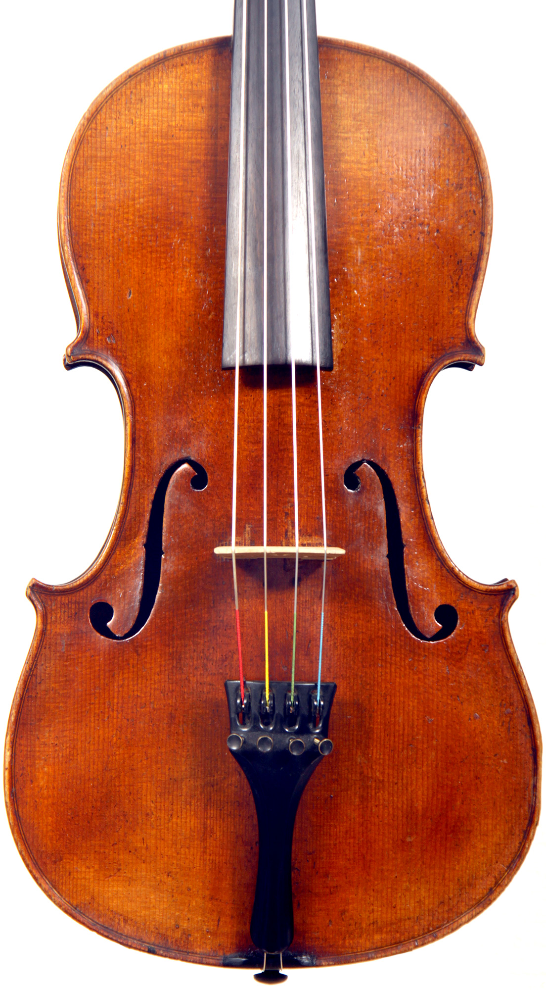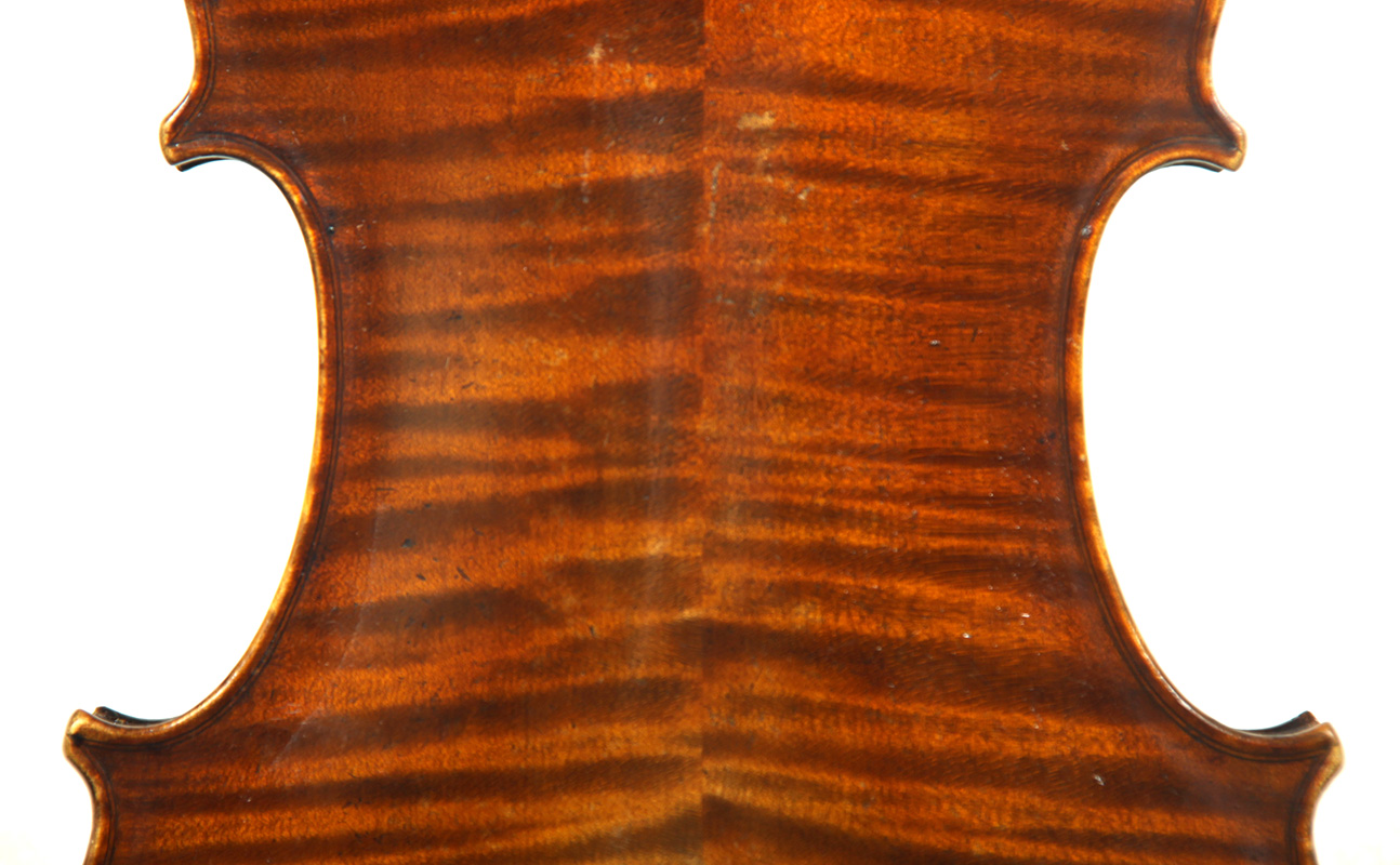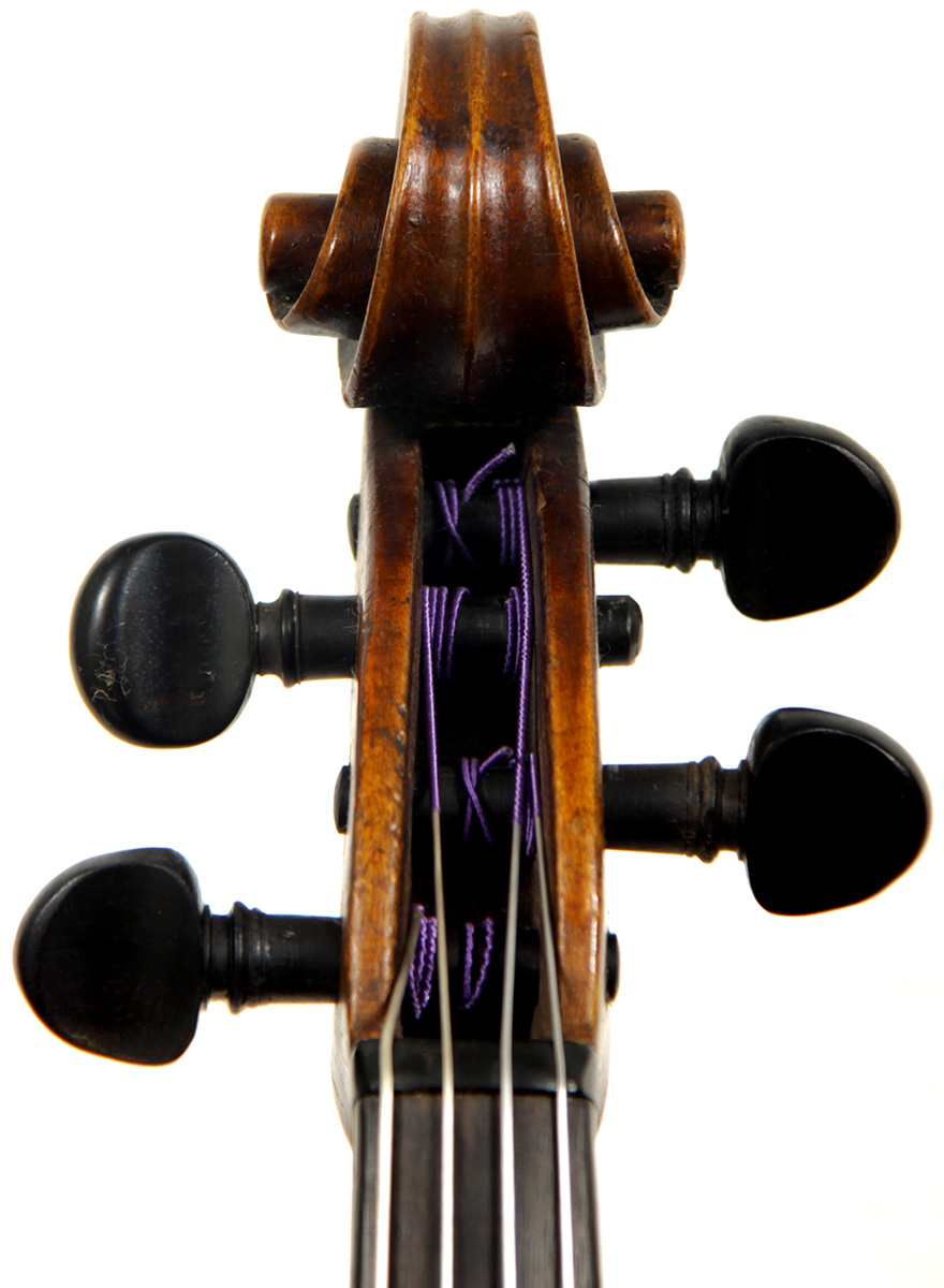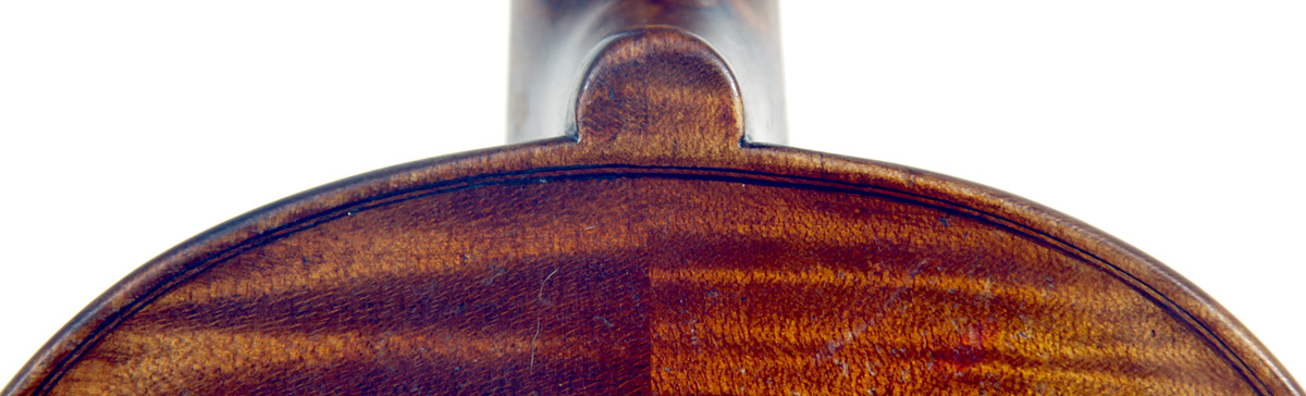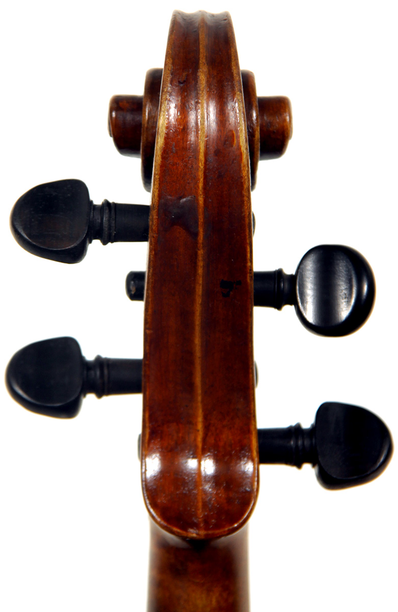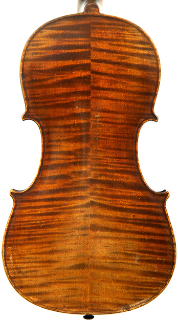 This viola bears a generic Stradivarius label used in many commercial instruments from that period and shows respect for high standards in the selection of good materials. Adding to its appeal is its relatively small size (back length of 39.2 cm), which indicates that it was made with a smaller person in mind.