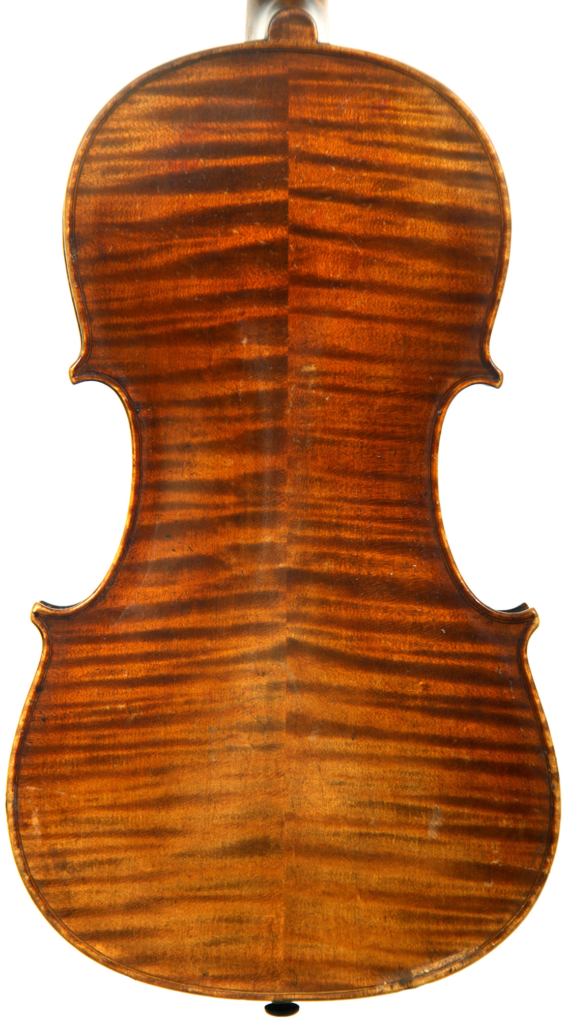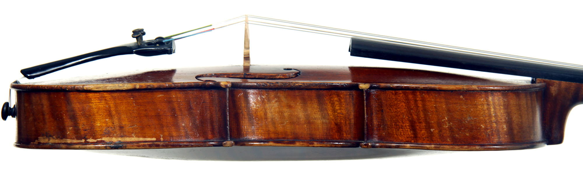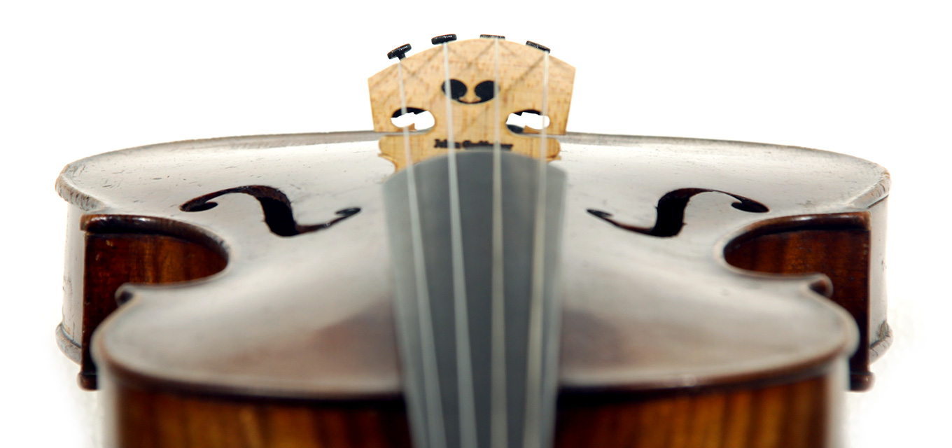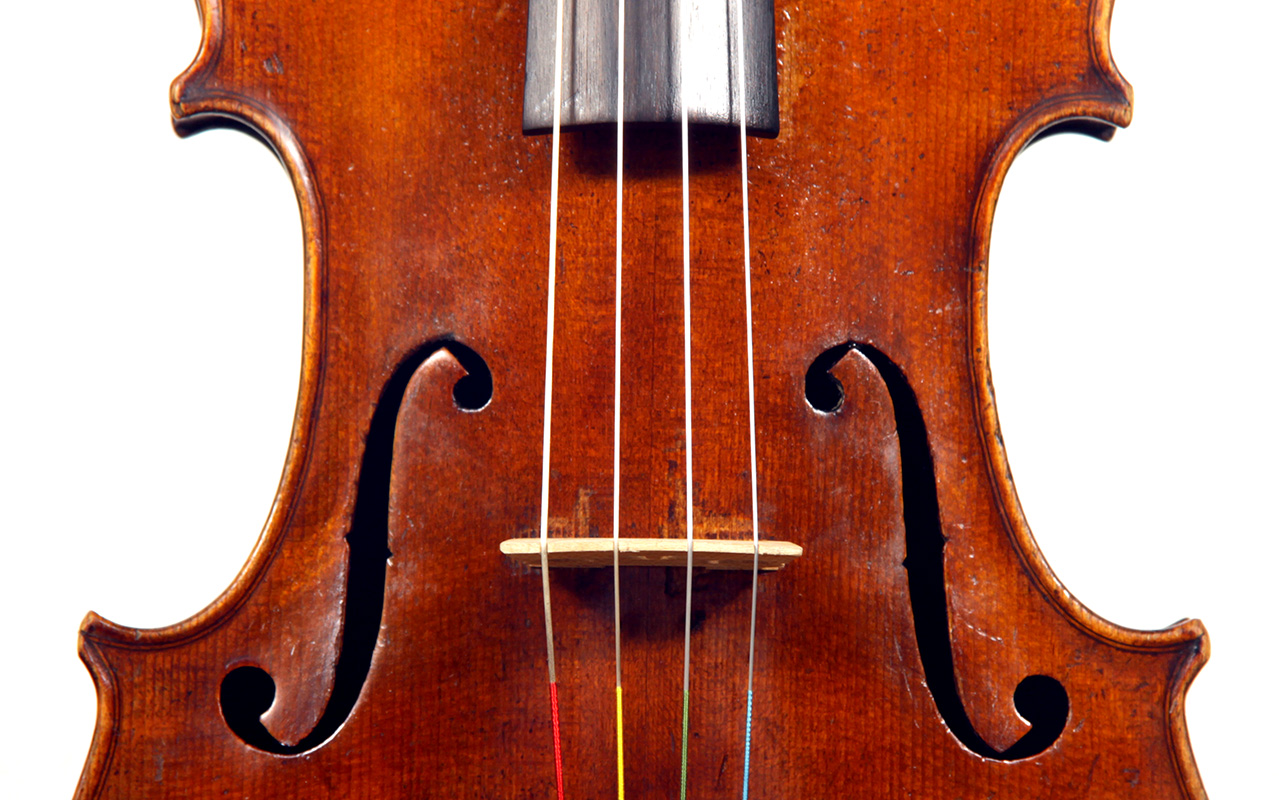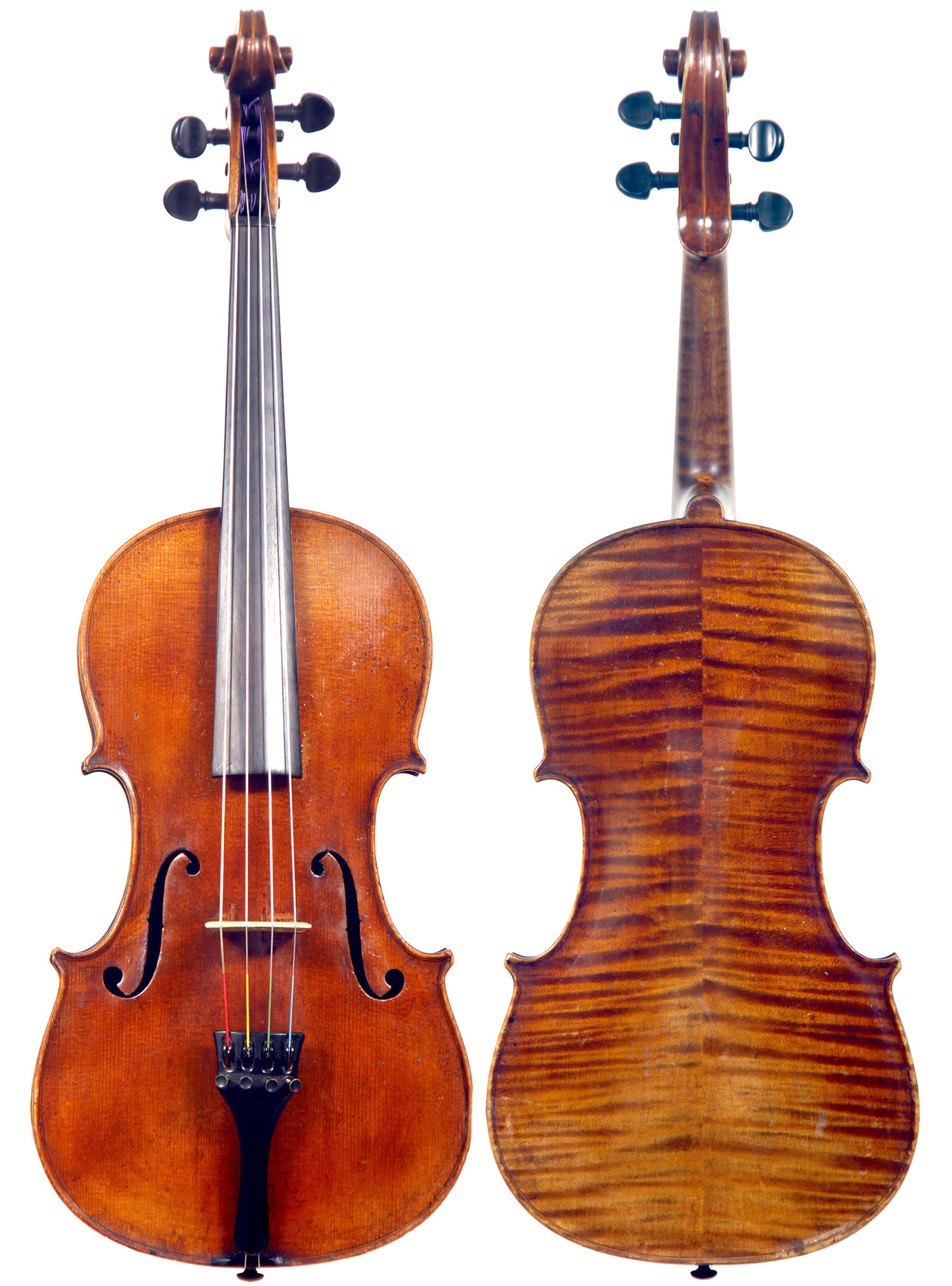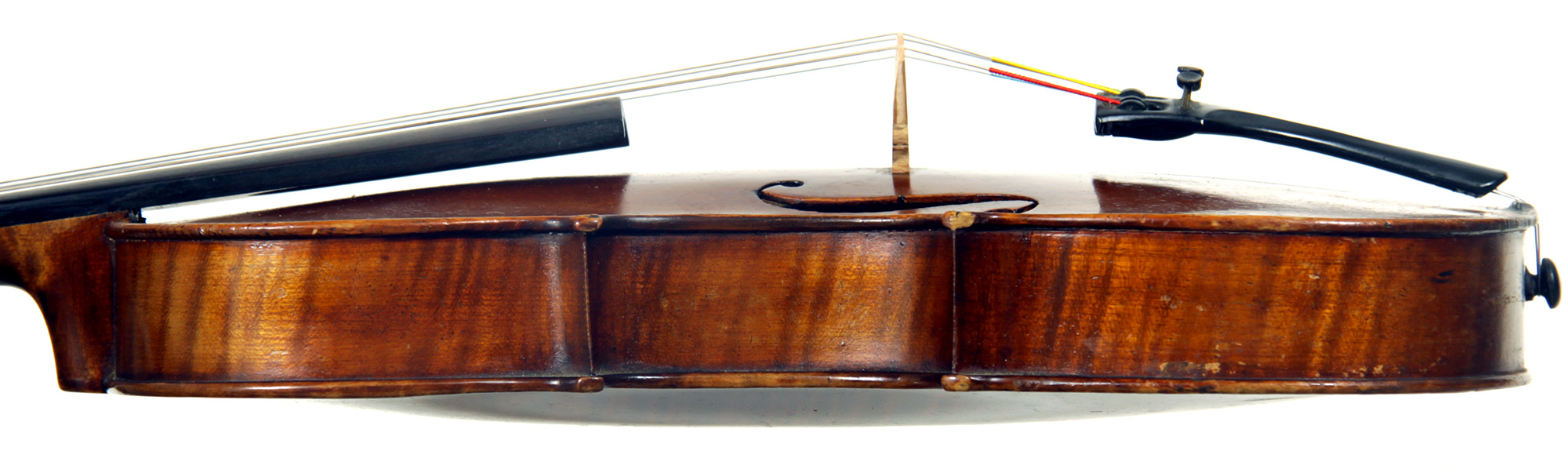 This viola bears a generic Stradivarius label used in many commercial instruments from that period and shows respect for high standards in the selection of good materials. Adding to its appeal is its relatively small size (back length of 39.2 cm), which indicates that it was made with a smaller person in mind.
