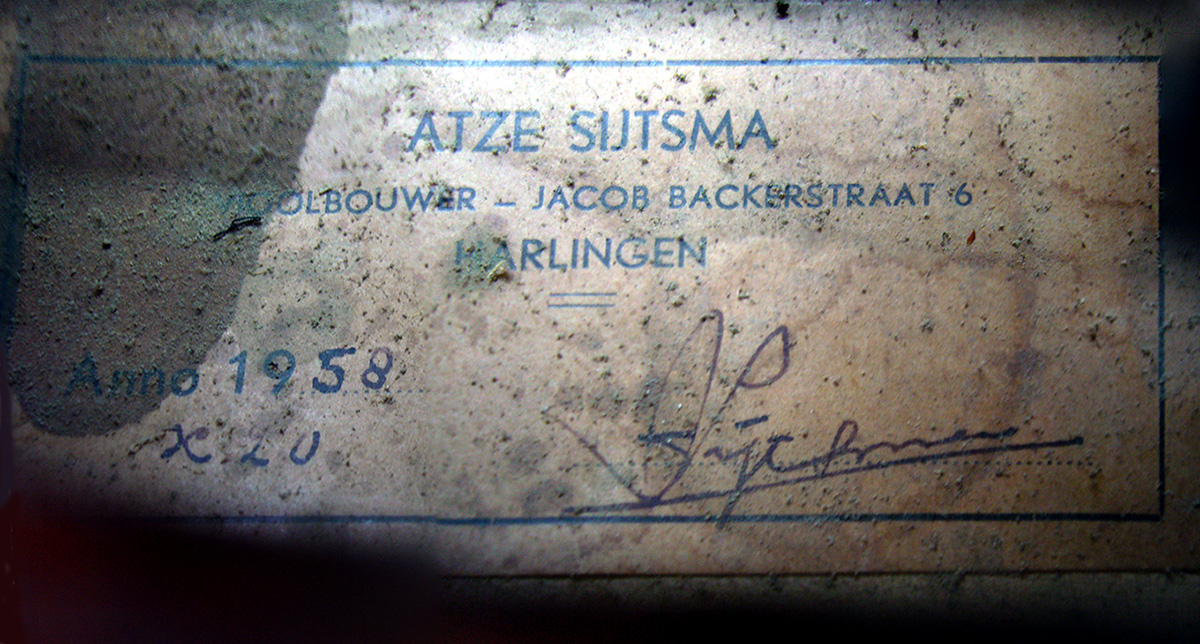 Atze Sijtsma was a respected Dutch violin maker based in Harlingen. I could not find biographical information about him (except for a photo from an filmed interview), but this violin clearly speaks of an experienced hand showing mastery of important aspects of fine lutherie. I'm particularly impressed by the exceptionally fine tracing of the purfling and outstanding cornerwork.