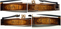 Interestingly the ribs bear an abbreviated version of the popular Latin 'Brescian Legend', which is basically an ode to the tree from which the violin was made. The contracted version, as on this violin, reads: 'VIVA FUI IVI SYLVIS DEO VI MORT VA DUL CE'. There are many renderings of this legend, but a very free translation of the original uncontracted version reads: