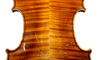 One notices the attractive nicely flamed maple used in the two-piece back, ribs, neck and scroll, along with the lovely pale golden-brown spirit varnish of high transparency that allows one to admire the wood. The top is of high-grade tone spruce with very even medium-to-narrow grain.