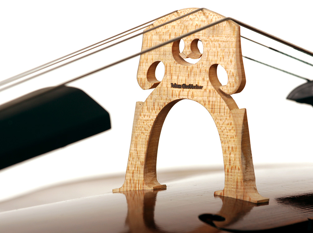 At this time this cello is fitted with a Belgian bridge by Aubert, a light-weight professional quality tailpiece, and a firm steel endpin, ensuring stability during performance.