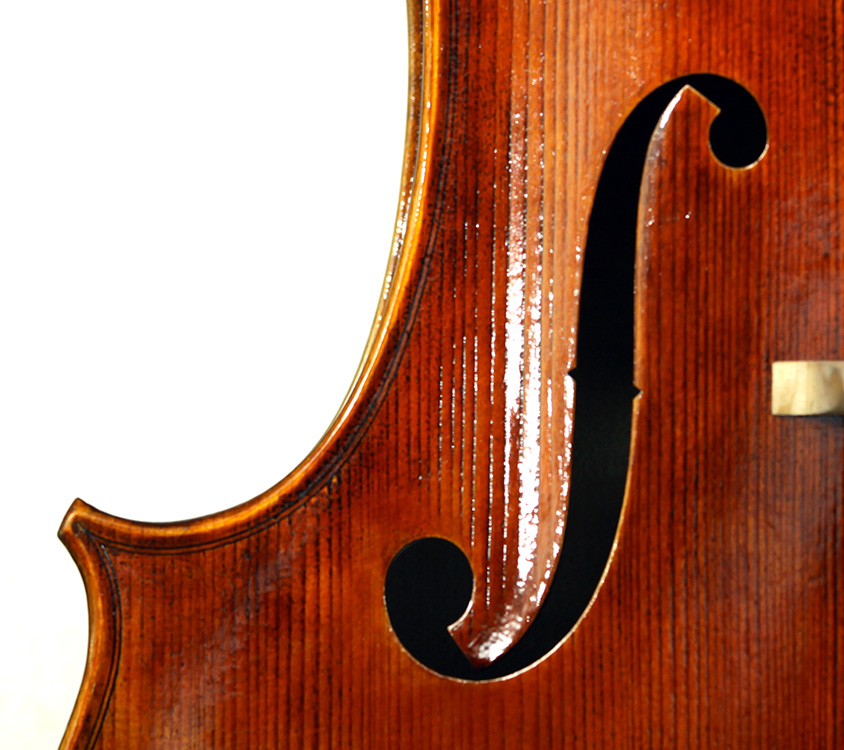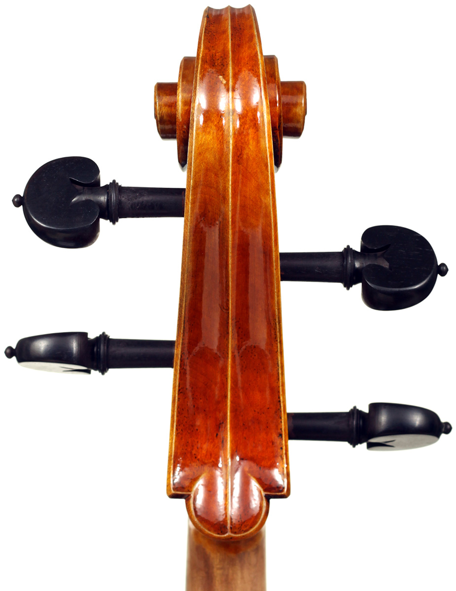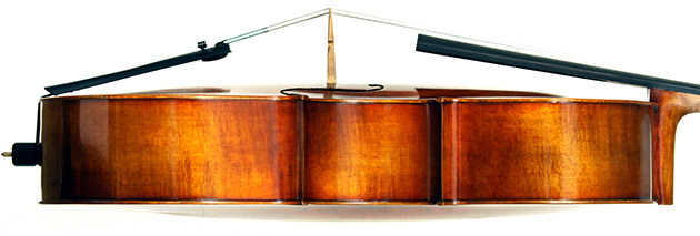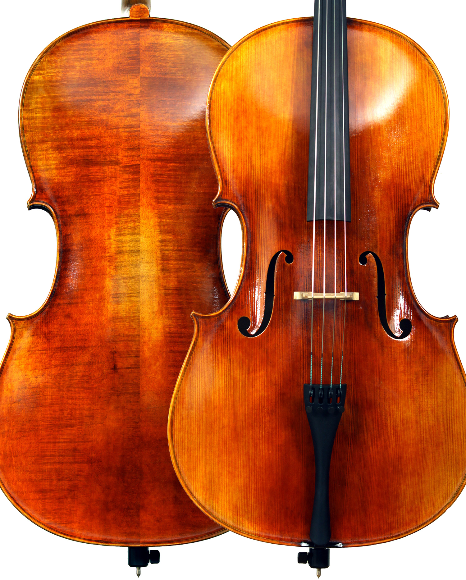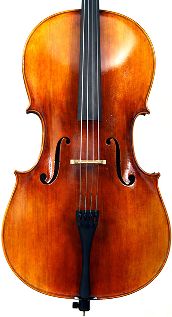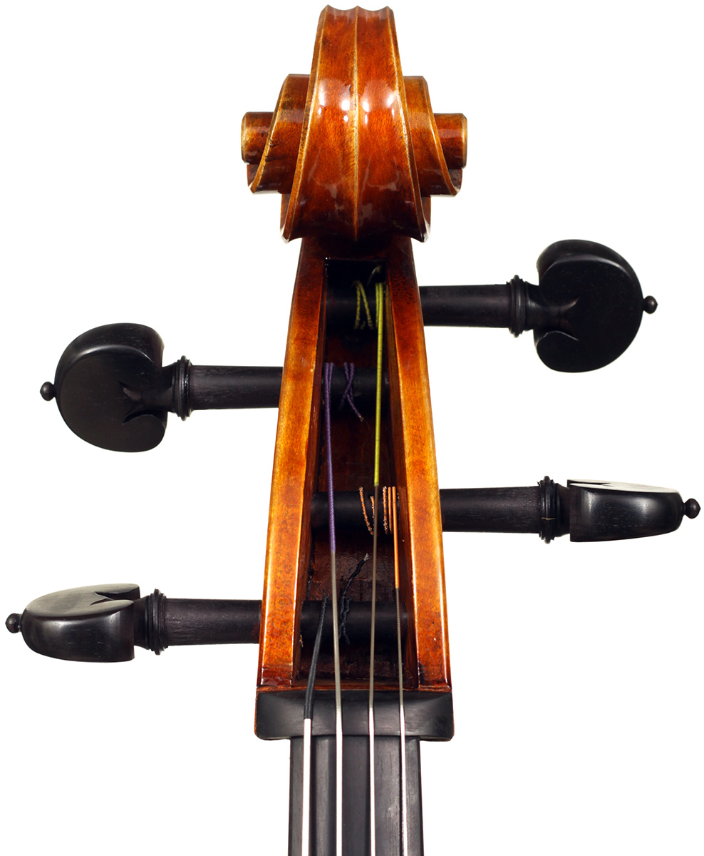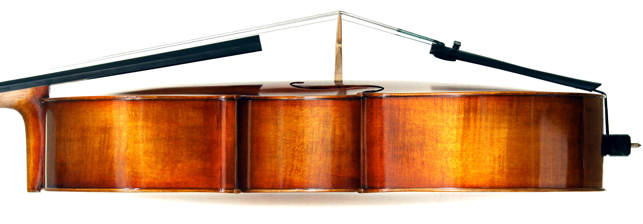 This cello closely follows the Stradivari model. It manifests a beautiful choice of materials combined with superb workmanship and attention to detail throughout. It is well-toned and responsive and would open doors for progress and expression. It speaks with ease and is a pleasure to play.