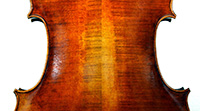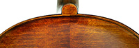 The two-piece back is of mildly flamed maple, repeated in the ribs, neck and scroll. The top is of very good tone spruce with fairly open grain throughout. One is struck by the lovely amber-brown oil varnish over the yellow ground with shades of brown - reminiscent of Stradivari, or even of Vuillaume.