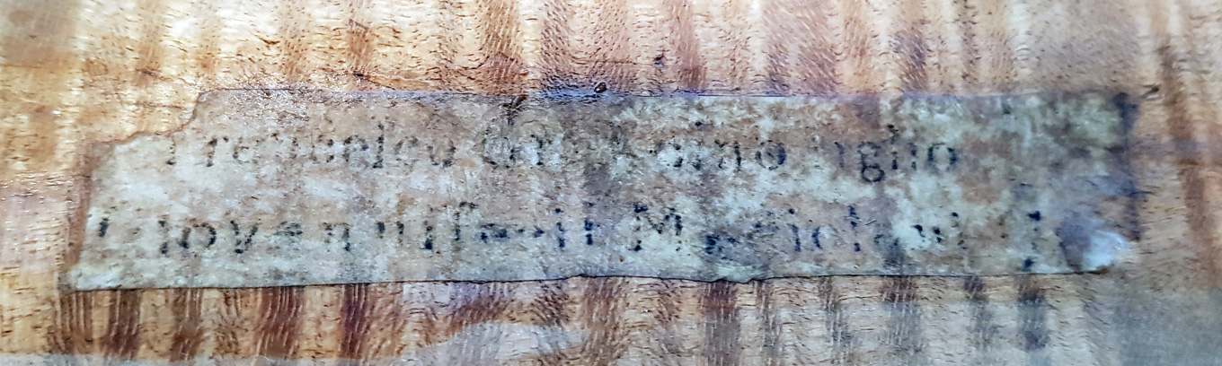 There is very little doubt that this violin was imported into South Africa by the important Dutch violinmaker and authority, J J van de Geest (1899-1974), who was a formidable force in the South Africa violin world. He had been the studio foreman and principal craftsman for George Hart & Son in London from 1919 to 1938 - a highly respected and knowledgeable individual who had been apprenticed by Eberle. He established the 1956 certificate stating that this is the work of Francesco Grancino. He emigrated to South Africa in 1938.