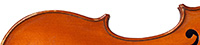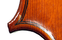 The two-piece back, ribs, neck and scroll are of nicely flamed maple with a medium to narrow curl. The top is of excellent tone spruce. The somewhat narrow corners are a characteristic of this studio's work, and the scroll and Fs are well-balanced and elegant. Workmanship throughout shows a steady hand and conforms to the standards of good French violin making.